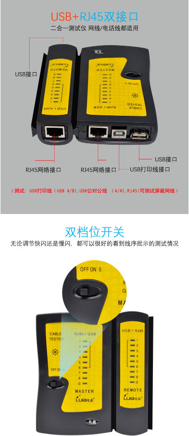 商品名称:礼嘉 LJ-918U 多功能USB测试仪 网线测线器 网络线/USB打印线 网络电缆测试仪 屏蔽线缆测试器 送9V电池一个