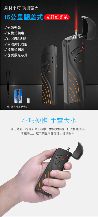 商品名称:礼嘉 LJ- GH688 迷你型光纤红光笔10公里-15公里通光笔 红光源测试笔打光笔10MW 红光笔翻盖式 干电池版