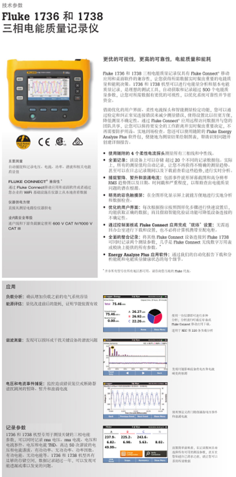 商品名称:☆福禄克 FLUKE F1736三相电能质量记录仪