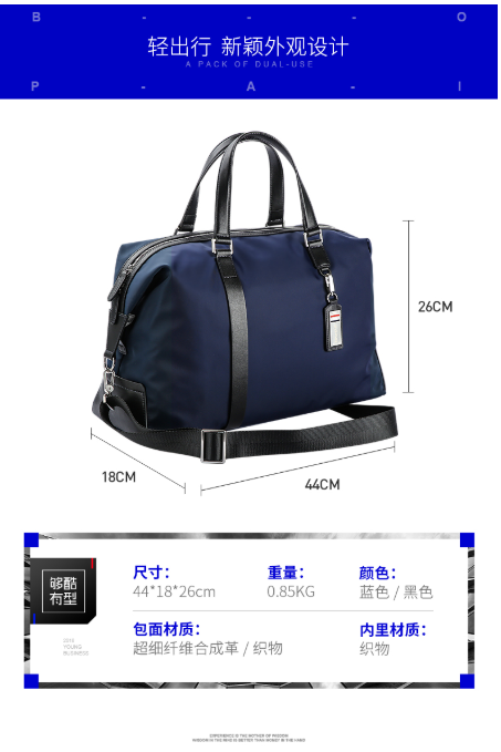 商品名称:博牌 BOPAI 32-01732 手提旅行包 高26CM×宽44CM×厚18CM 蓝色