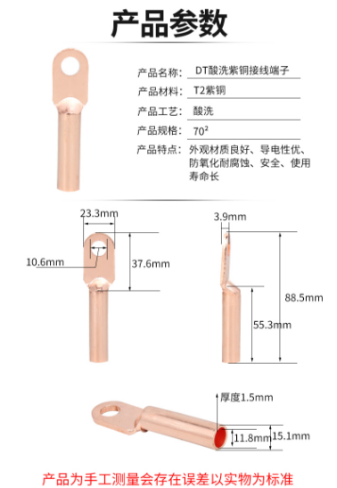商品名称:BOWERY DT-70 DT紫铜接线端子 1个