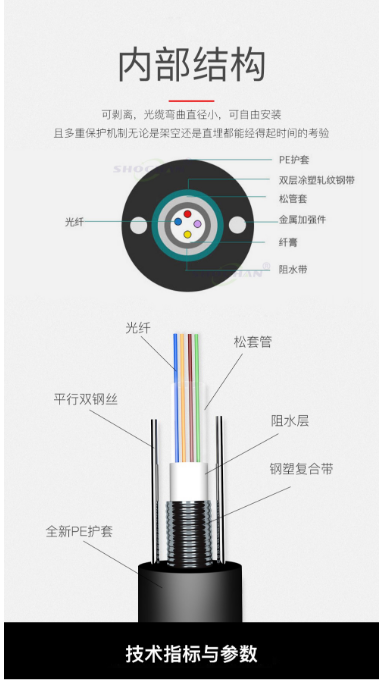 首千 SHOCHAN SQ-GYXTW-12B1-06 单模室外铠装光缆 12芯室外光纤线架空地埋 1米
