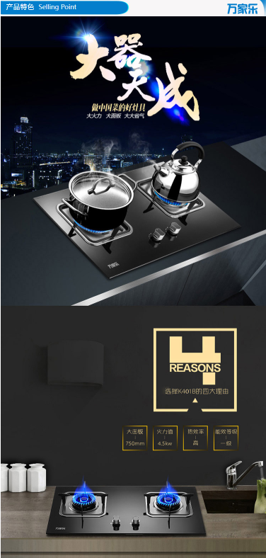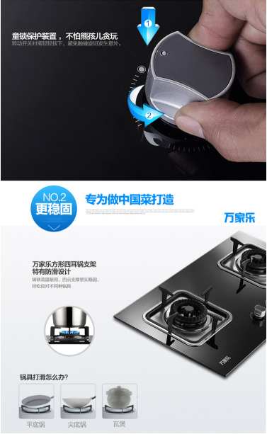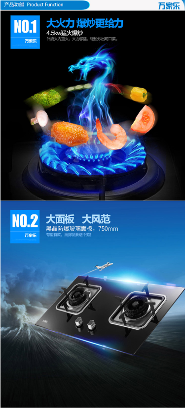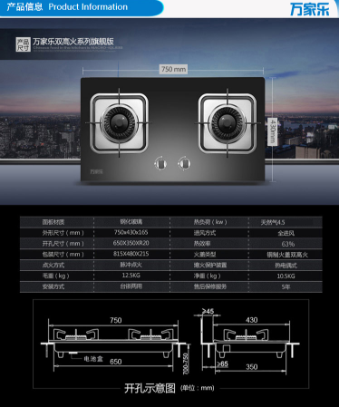 商品名称:万家乐 MACRO 钢化玻璃 4.5KW大火力 嵌入式燃气灶(天然气)JZT-K401B