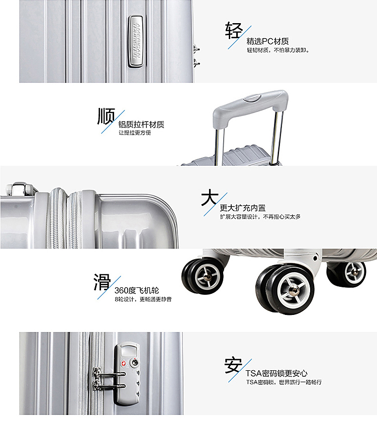 商品名称:美旅 行李箱大容量可扩展 TSA海关锁旅行箱 28英寸79B海港蓝