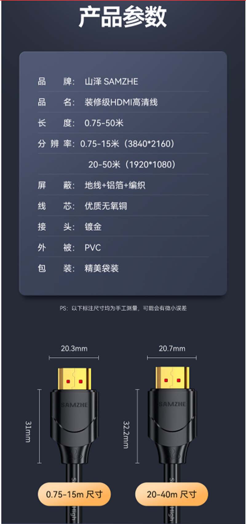 ☆山泽 SAMZHE SM-8840 经典版40米工程级HDMI数字高清线 数字信号放大芯片 3D功能 电视线/投影仪线