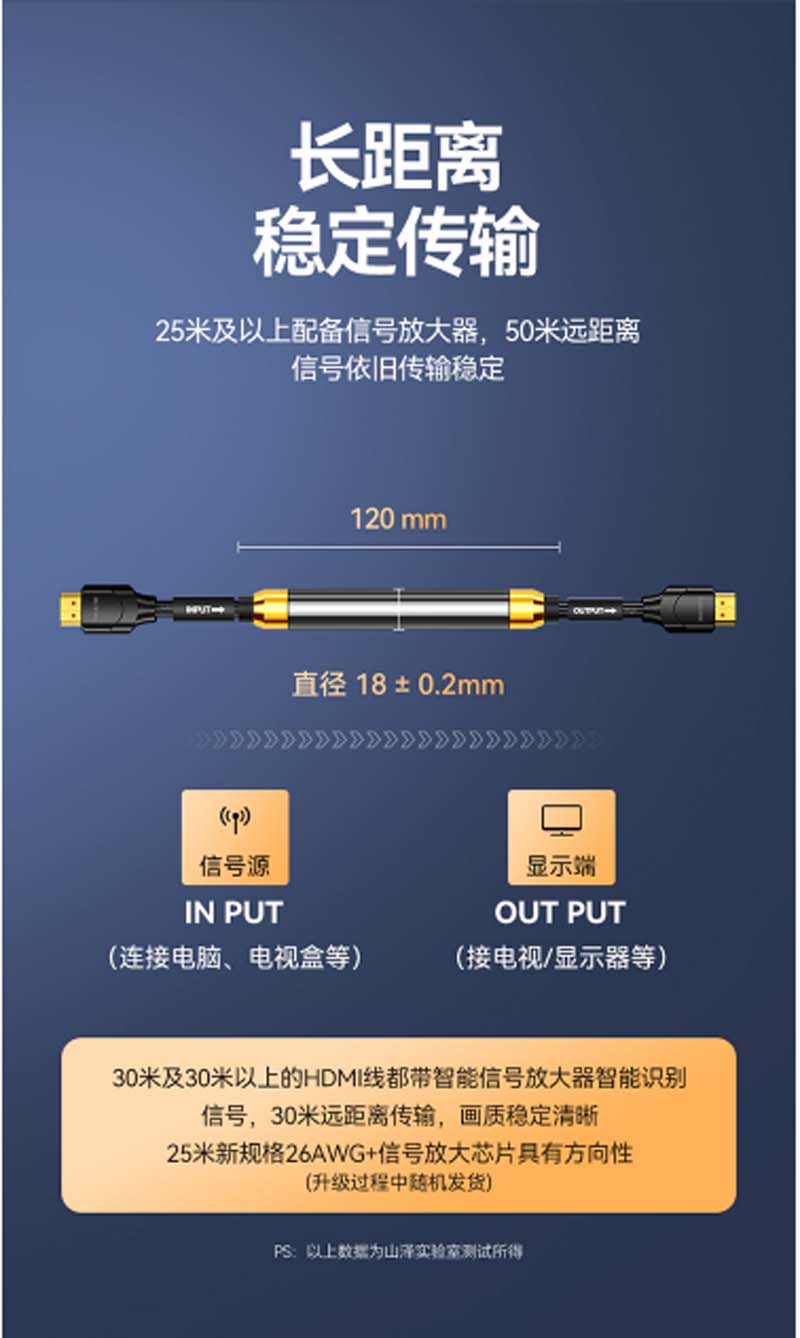 ☆山泽 SAMZHE SM-8830 经典版30米工程级HDMI数字高清线 数字信号放大芯片 3D功能 电视线/投影仪线