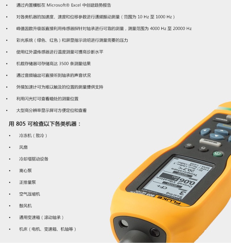 商品名称:☆福禄克 FLUKE F805振动诊断分析仪 测振仪 振动测试仪