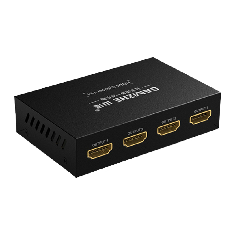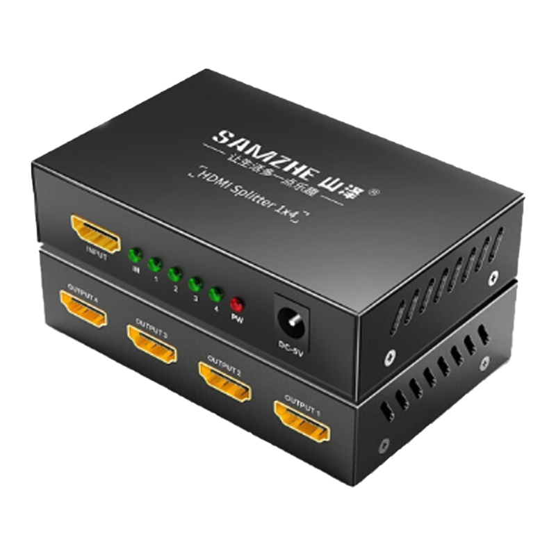 ☆山泽 SAMZHE HDMI一进四出分配器 支持3D 4K数字高清视频1分4一分四分屏器 笔记本连接投影仪HV-504W