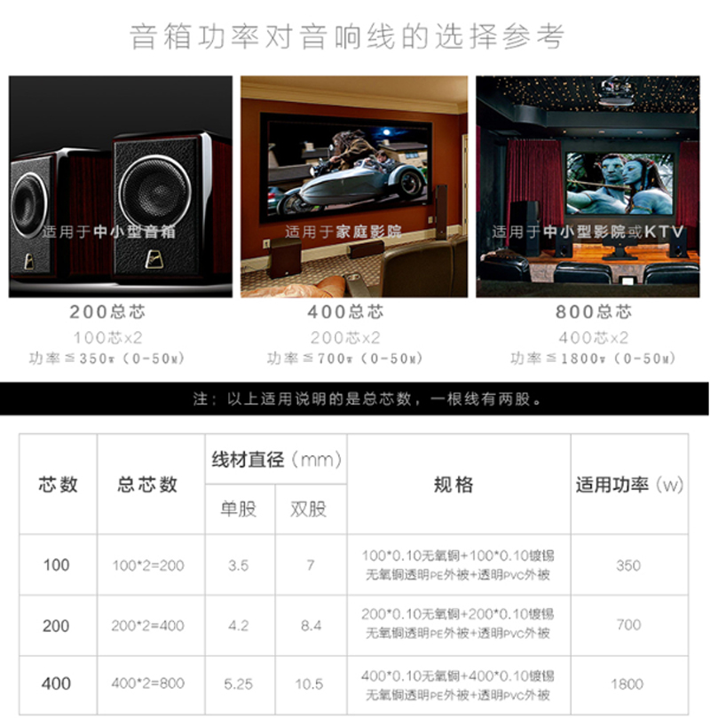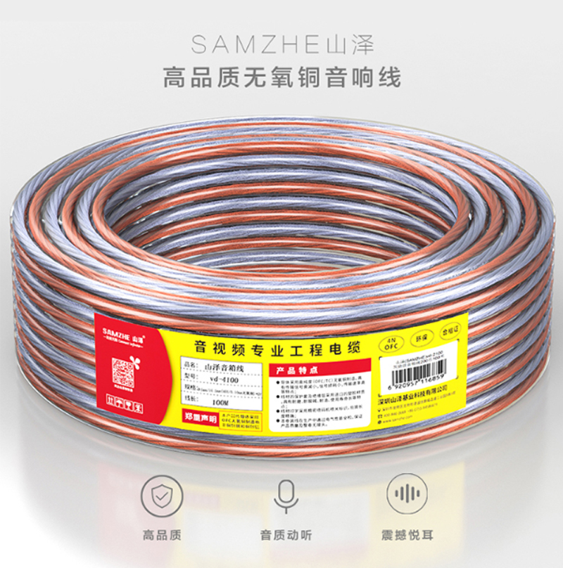商品名称:☆山泽 SAMZHE 发烧级音箱线 400芯100米 音频线 喇叭功放连接线音箱连接线 VD-4100