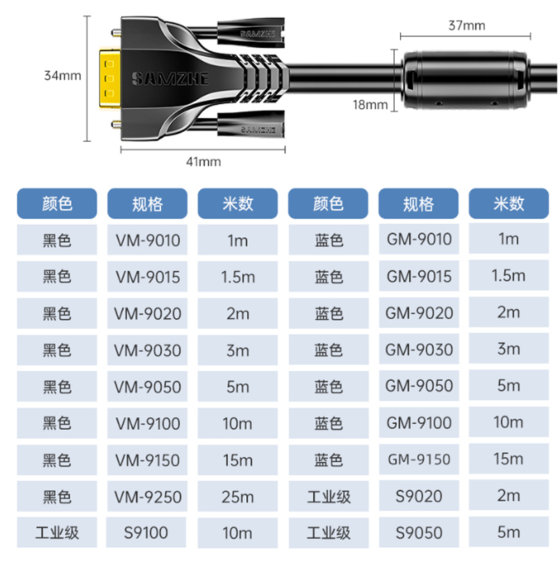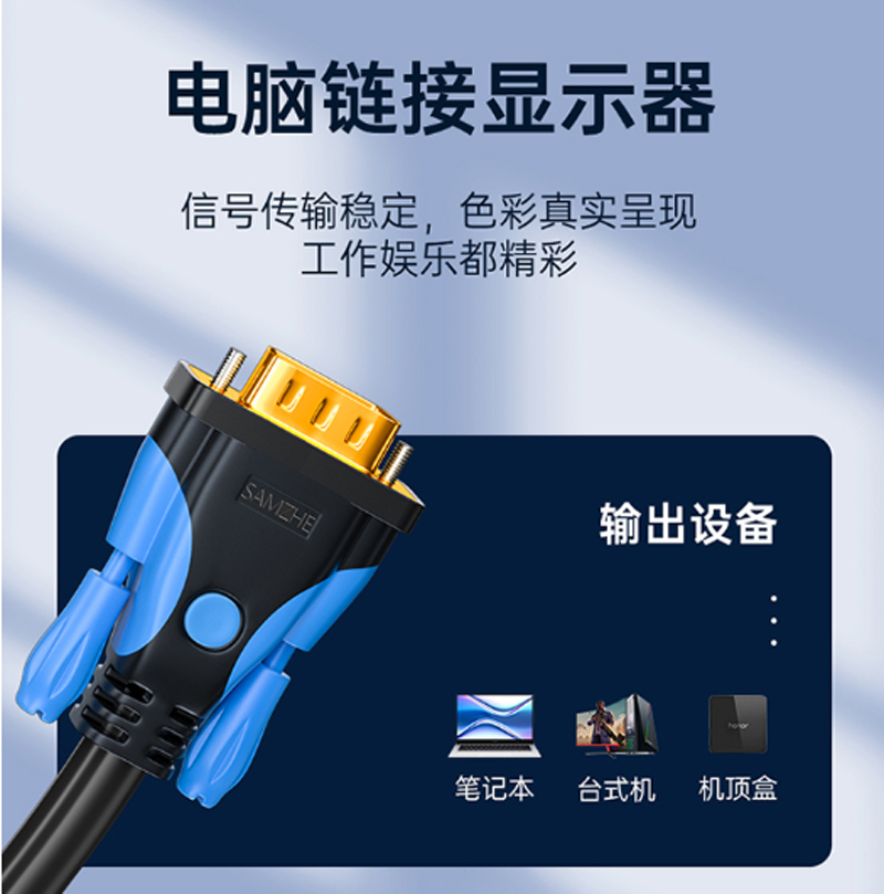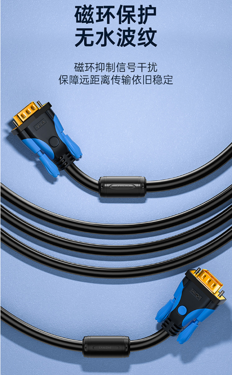 商品名称:☆山泽 SAMZHE 高清双磁环VGA线3+9线芯 针/针 电脑投影仪显示器视频线数据信号线 1.5米 GM-9015