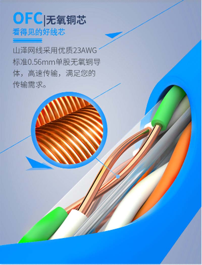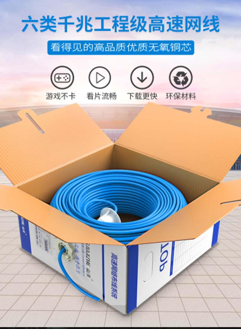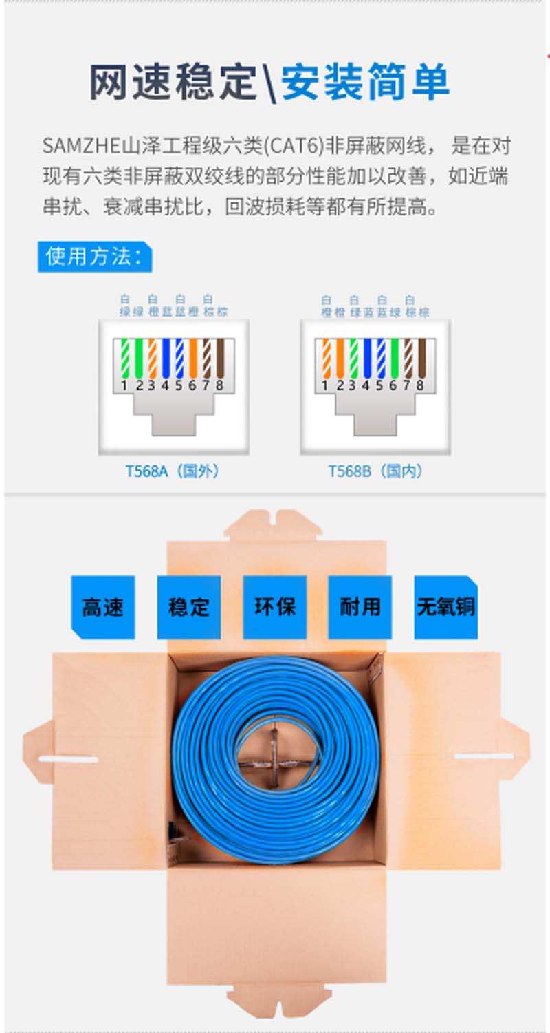 商品名称:☆山泽 SAMZHE 原装环保CAT6六类千兆非屏蔽纯无氧铜高速网线 100米/箱 浅绿 SZ-T6100
