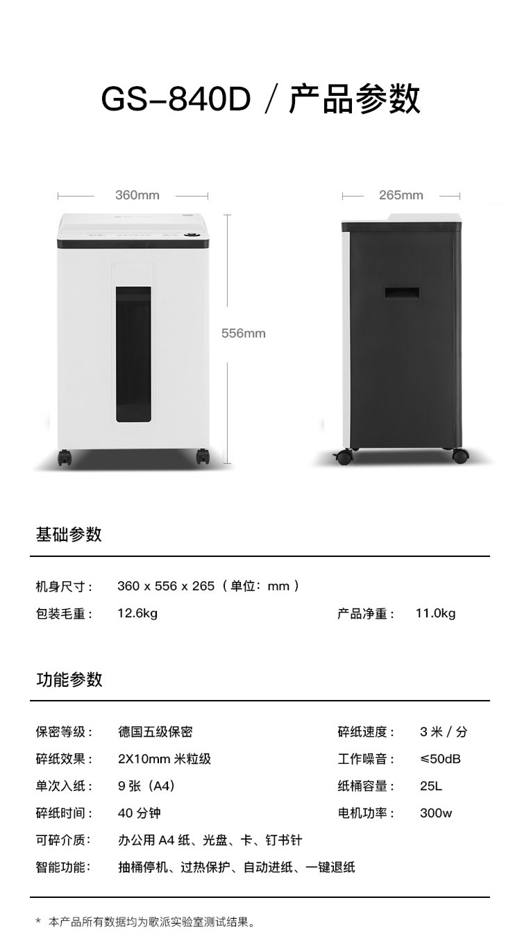 商品名称:☆歌派 GS-840D (2×10MM) 碎纸机