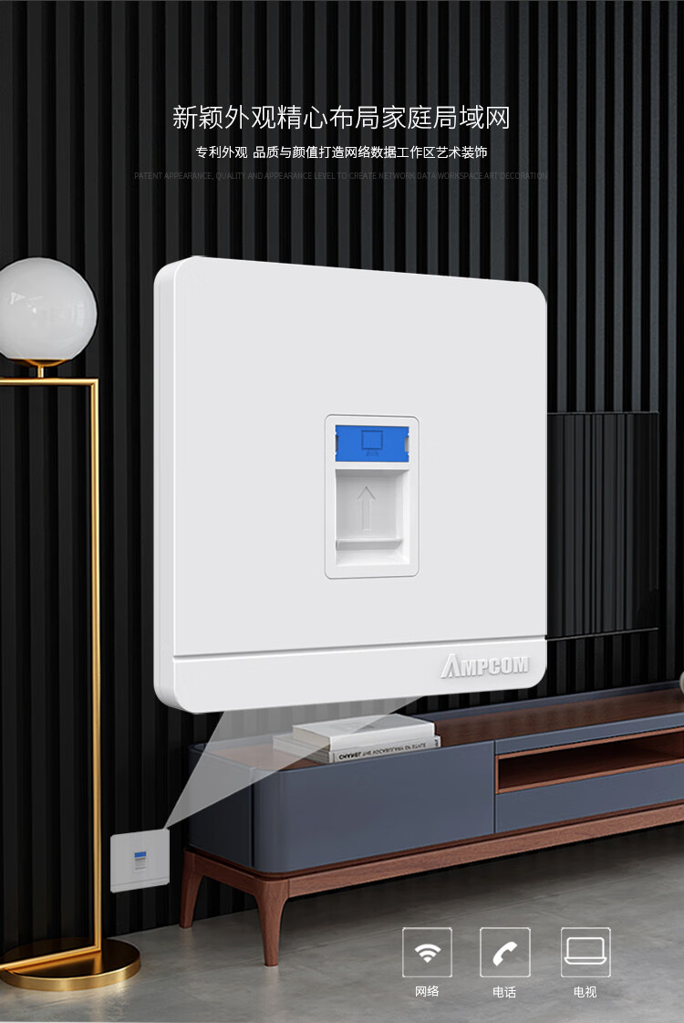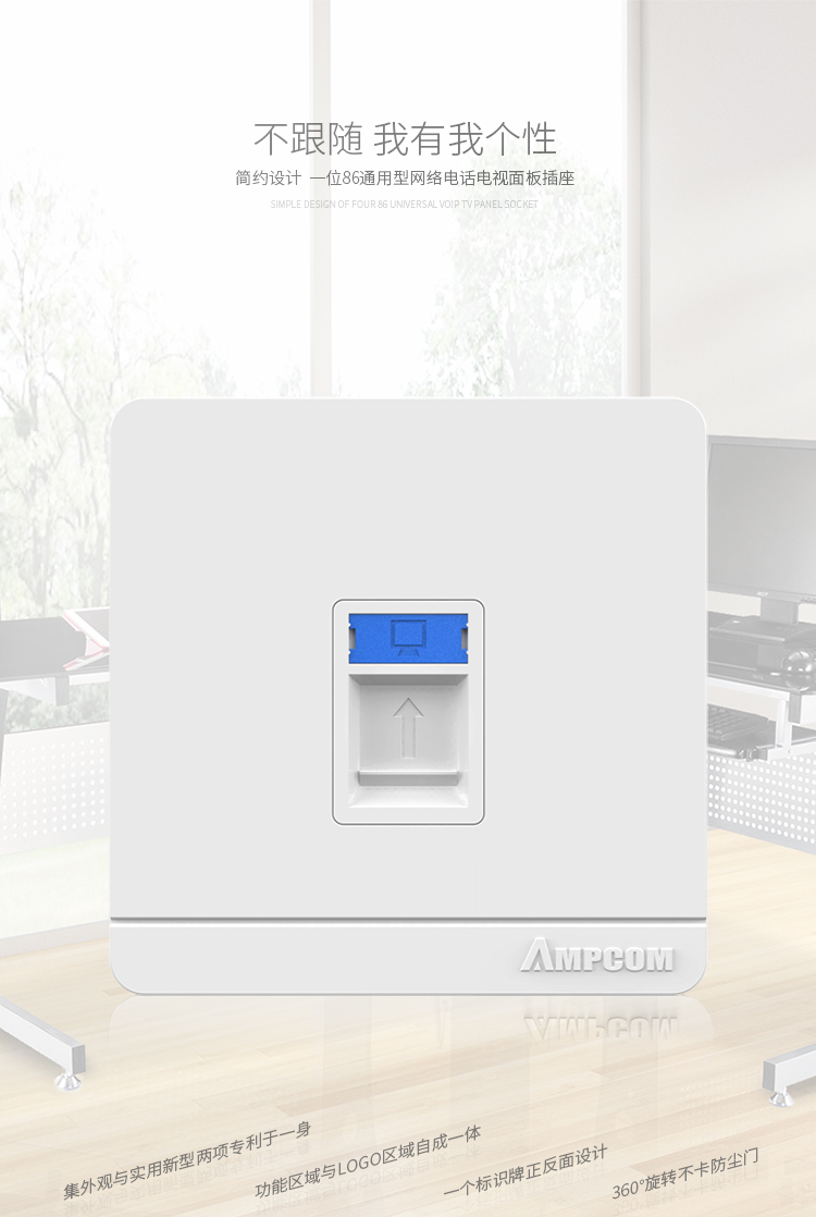 ☆安普康 AMPCOM 一位单口网络面板 工程级电话电视开关插座 AM8601