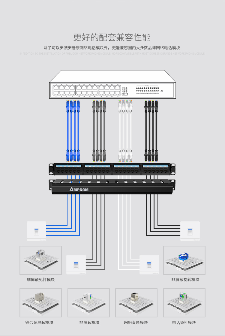 ☆安普康 AMPCOM 配线架48口超五类网络工程50U镀金 AMCAT5E1948 2015款