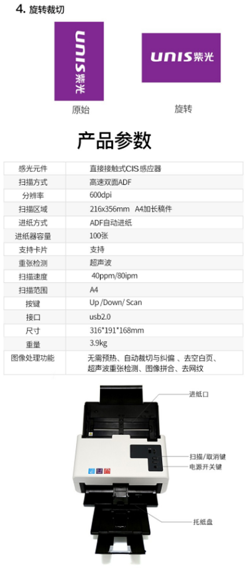 商品名称:☆紫光(UNIS) Q400 扫描仪