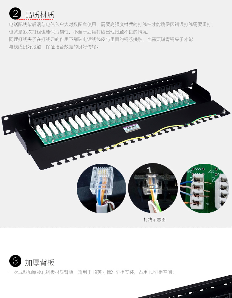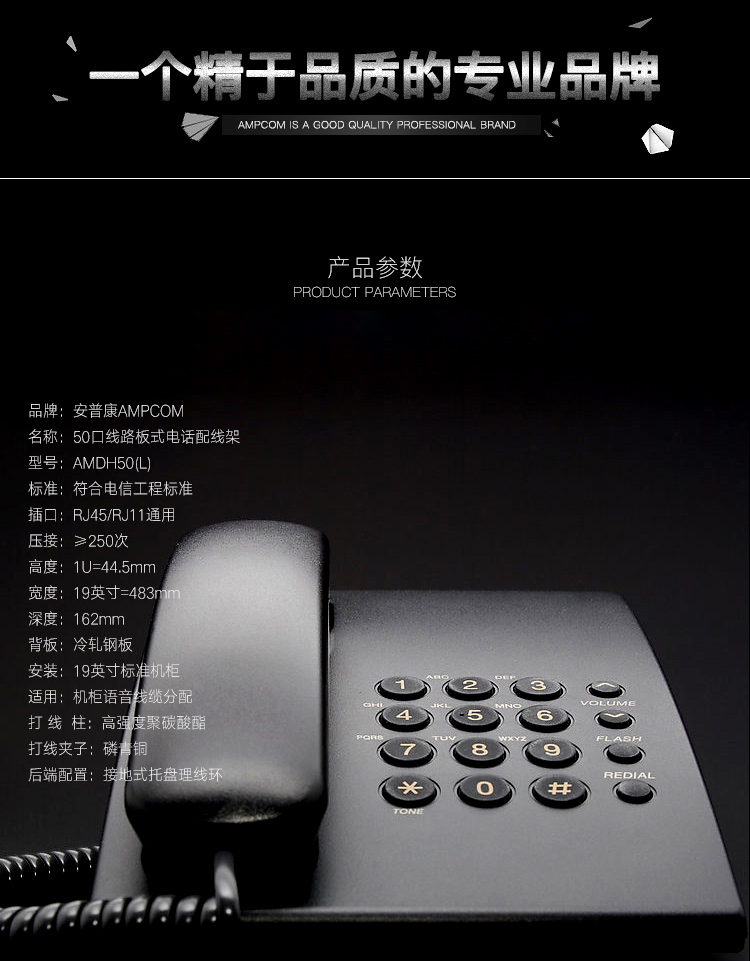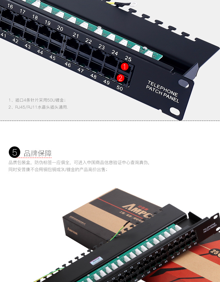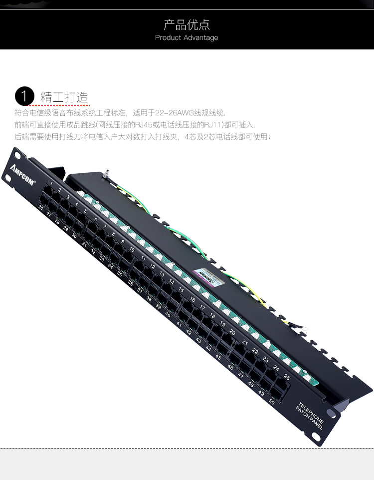 商品名称:☆安普康 AMPCOM 语音电话配线架50口4芯2芯电话线线路板式电信工程级50U镀金 AMDH50 L