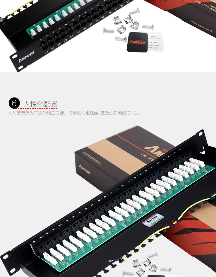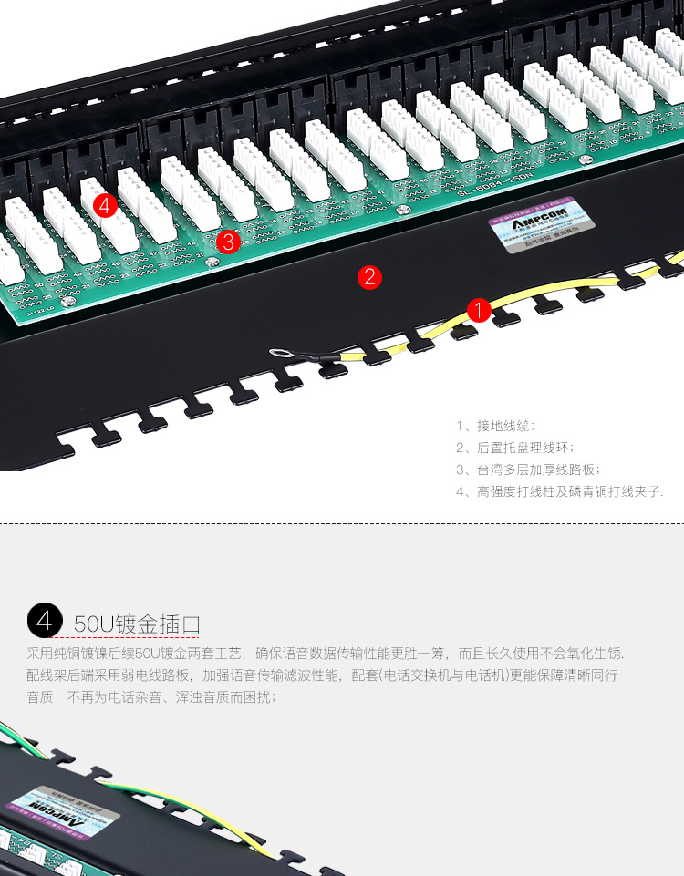 ☆安普康 AMPCOM 语音电话配线架50口4芯2芯电话线线路板式电信工程级50U镀金 AMDH50 L