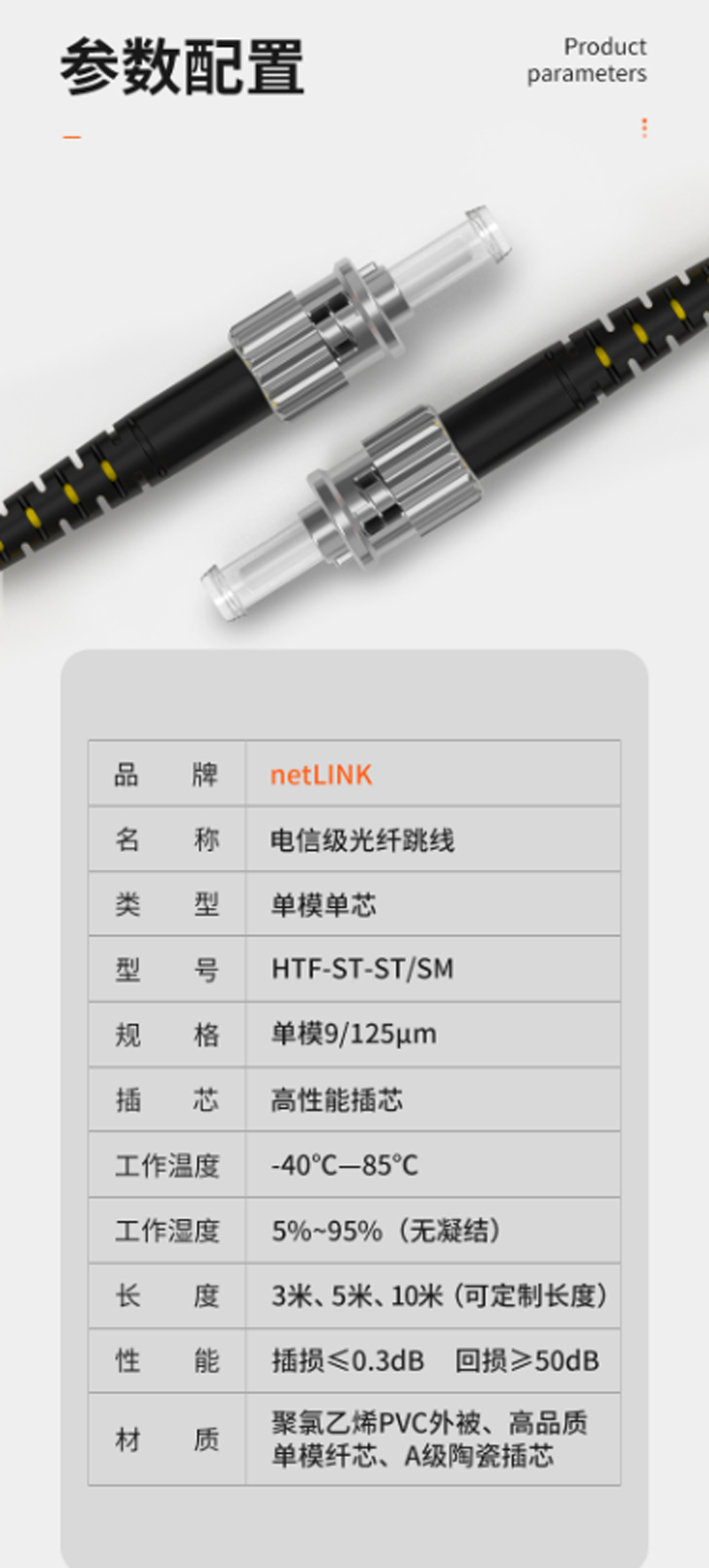 商品名称:☆NETLINK HTF-SC-SC 电信级光纤熔光纤跳线 单模单芯 3米