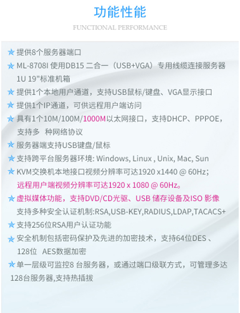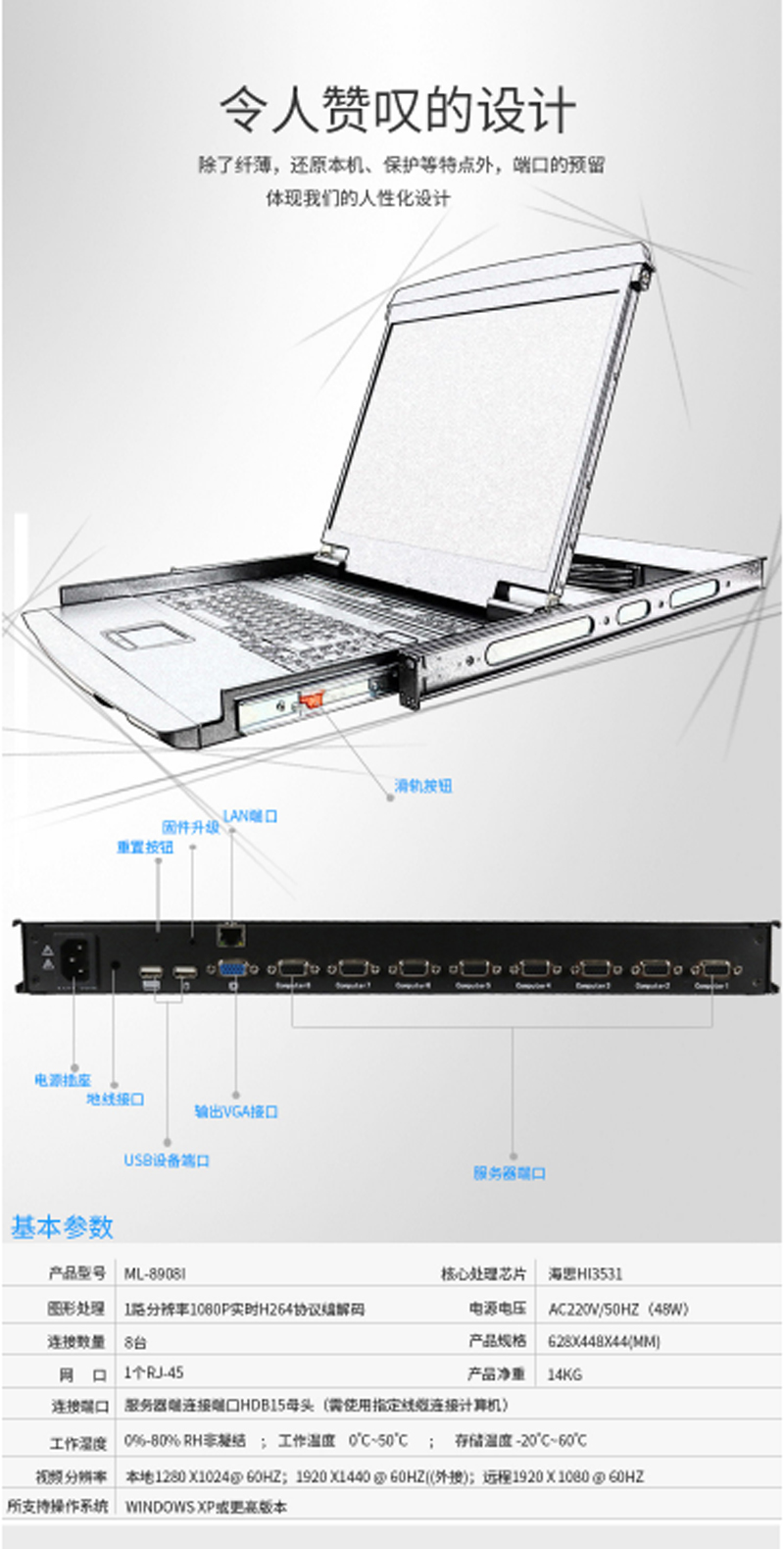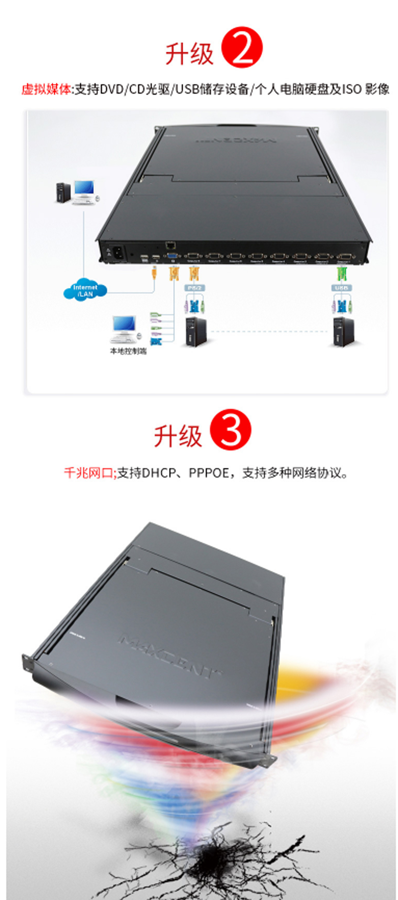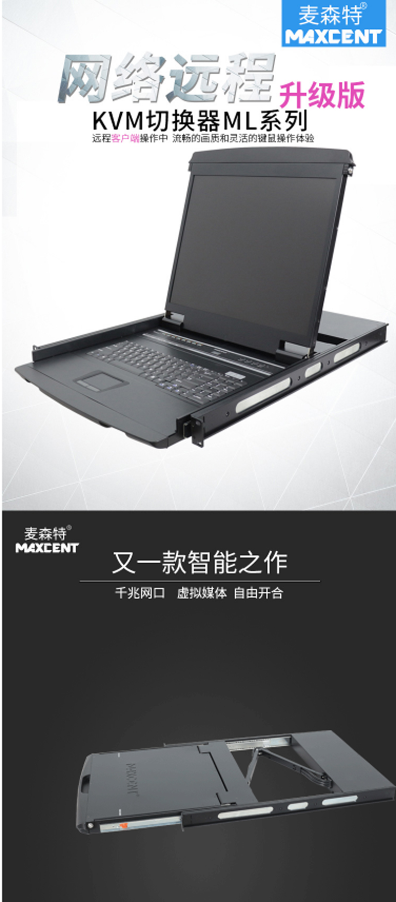 ☆麦森特 MAXCENT ML-8908I KVM切换器 8口16口USB口数字远程IP机架式LCD液晶 19英寸