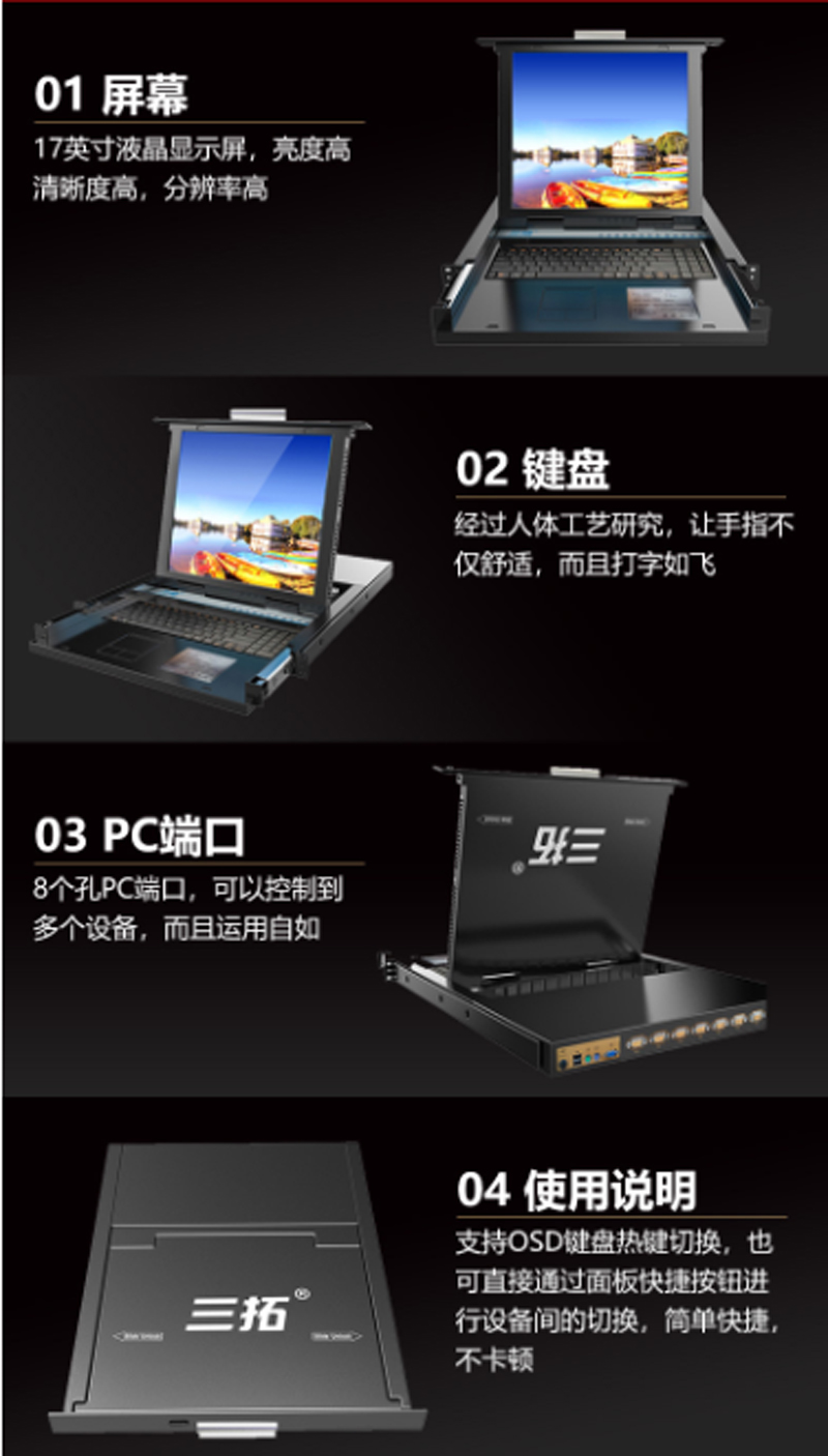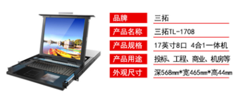 商品名称:☆三拓 TL-1708 17英寸液晶 8口 KVM切换器