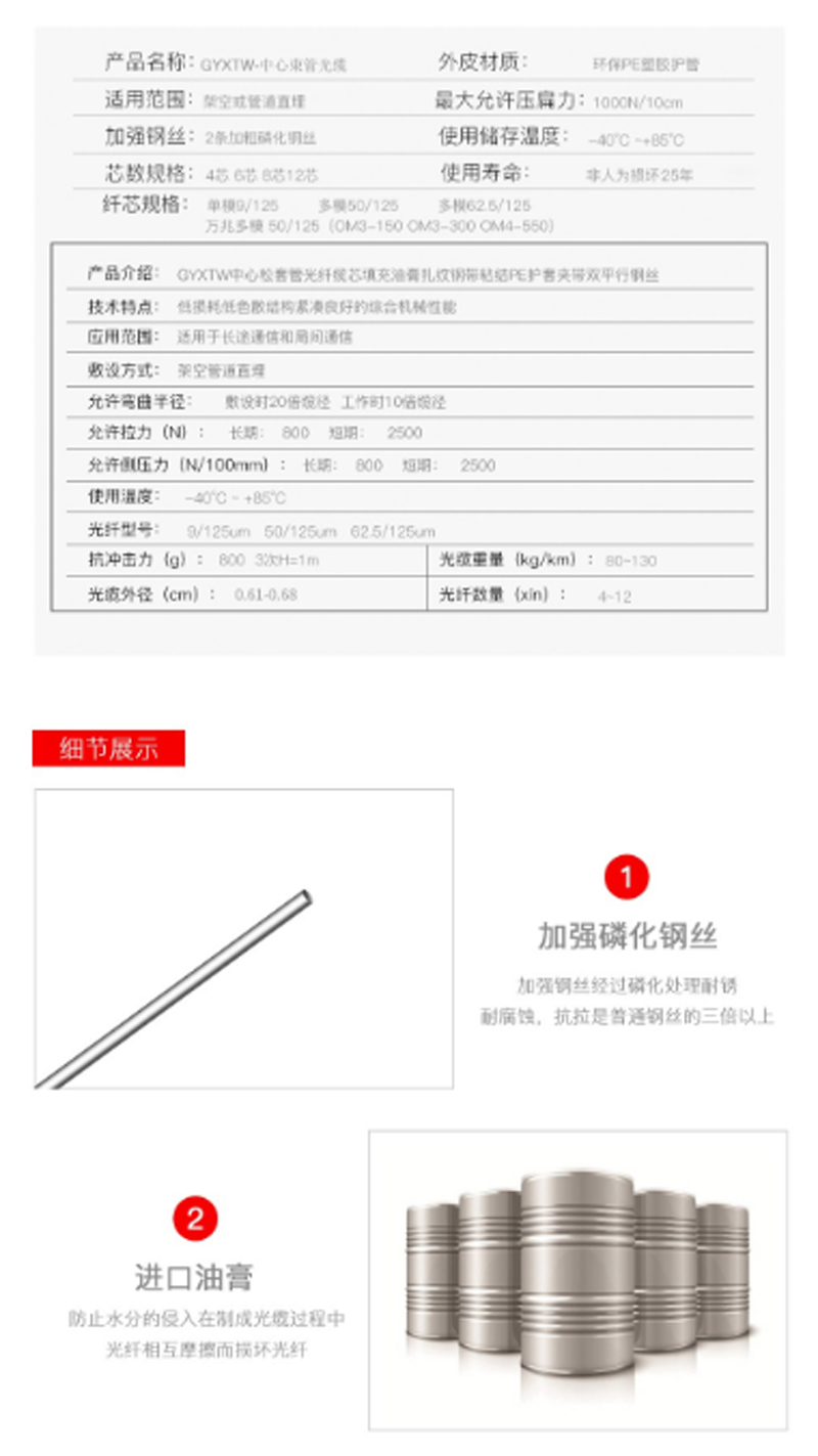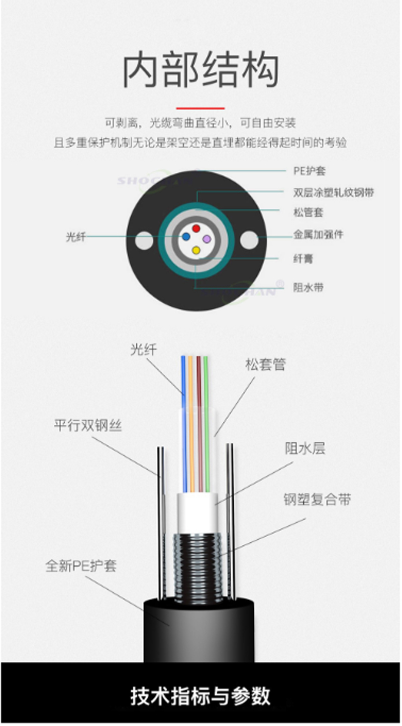 商品名称:☆首千 SHOCHAN SQ-GYXTW-8B1-06 单模GYXTW中心管式凯装光缆 8芯 3000米