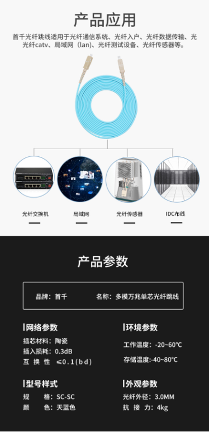 商品名称:☆首千 SHOCHAN SQ-GT8278W 高速OM3万兆光纤跳线 机房专用光纤线 SC-SC多模单芯 5米