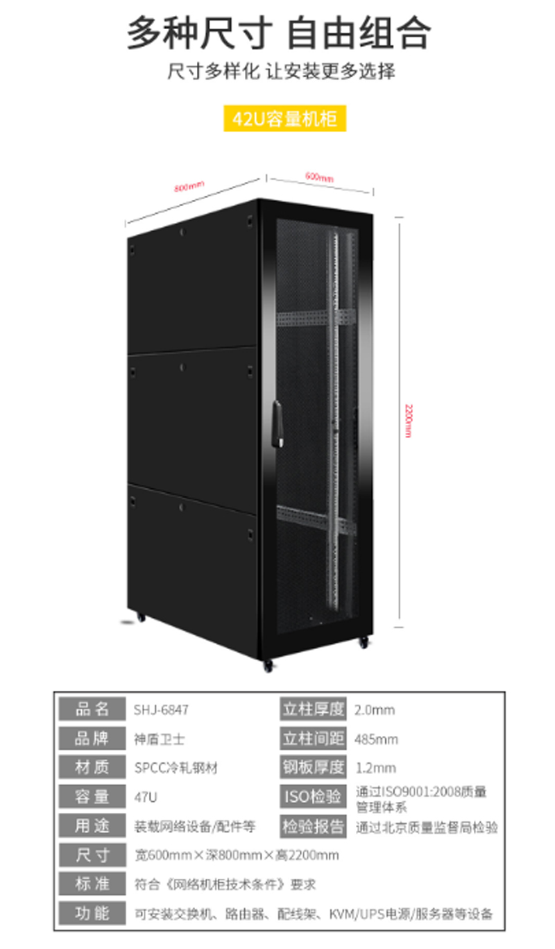 ☆神盾卫士 SDWS SHJ-6847 网络服务器机柜 2.2米47U九折型材 800深机柜