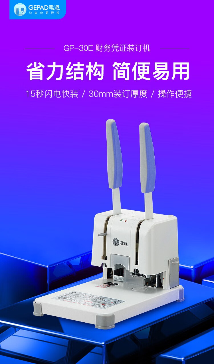 商品名称:☆歌派 GEPAD GP-30E 凭证装订机 手动轻便型