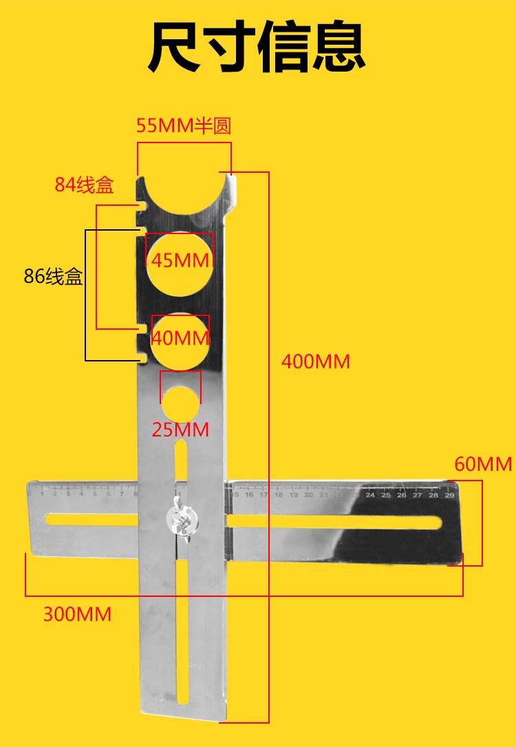 商品名称:国产 万向定位开孔器贴瓷砖玻璃开孔神器装修可调节线盒测量工具