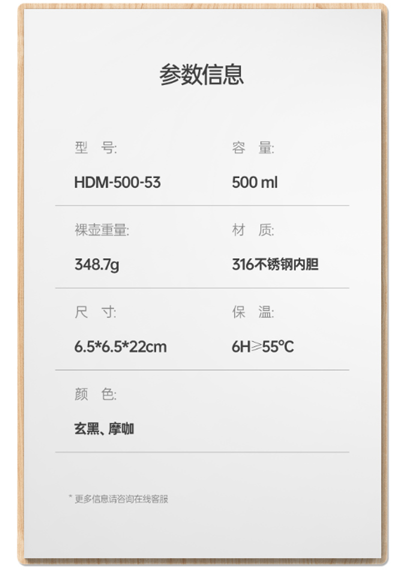商品名称:哈尔斯-HDM-500-53-商务温显保温杯-黑色、摩咖-单位:杯