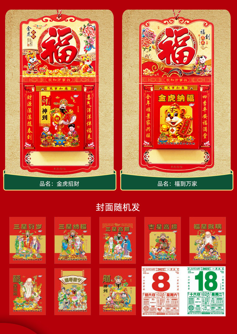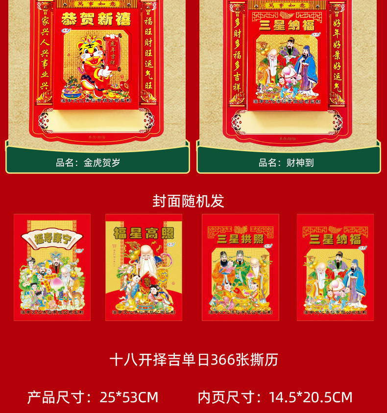 国产 挂历 外围尺寸17.5*10.5cm,内页尺寸14.7*10.5cm 60克双胶纸彩色印刷 365张
