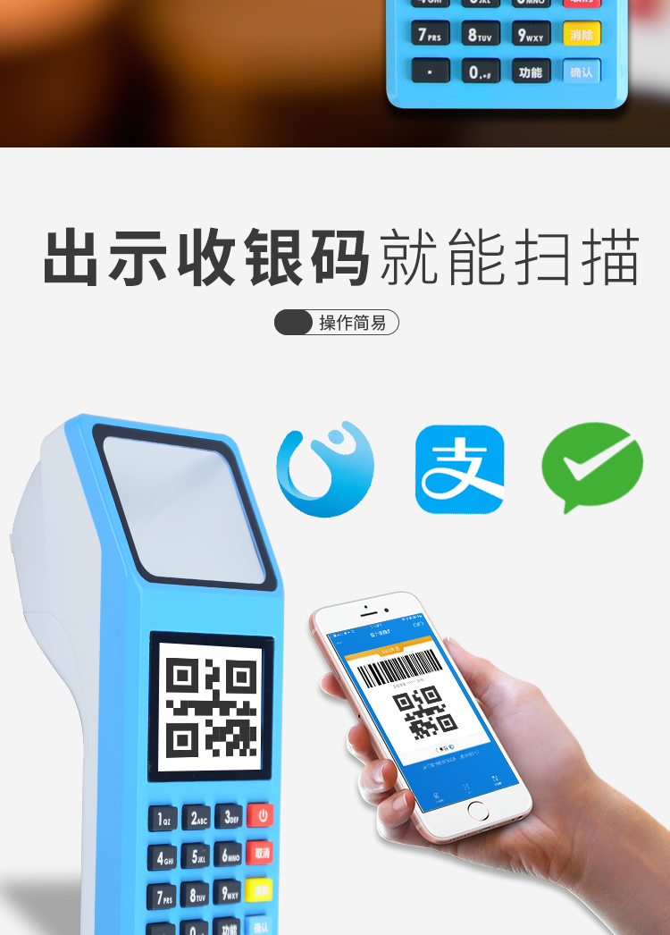 商品名称:国产 刷卡机个人二维码扫码机器