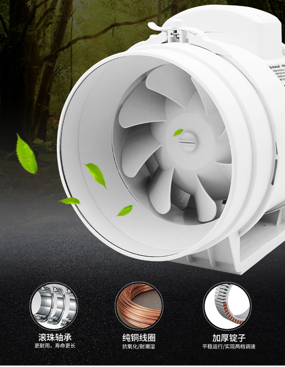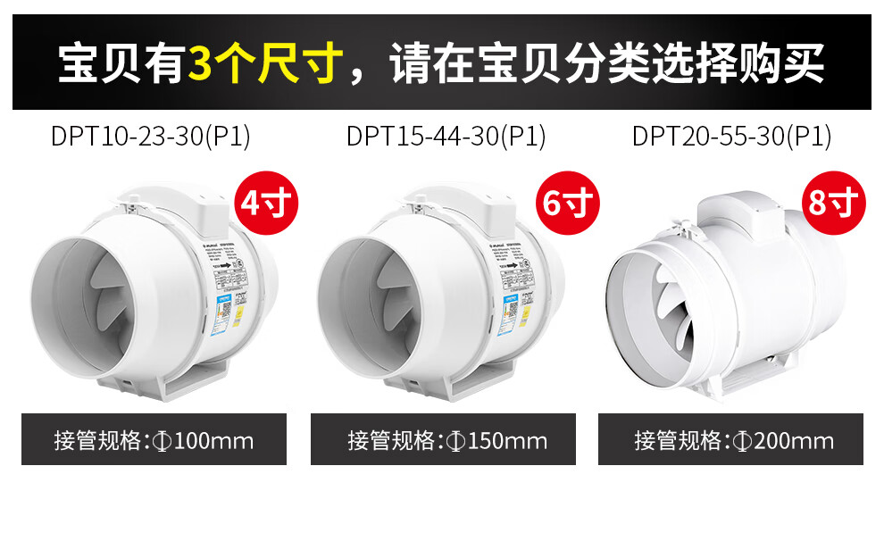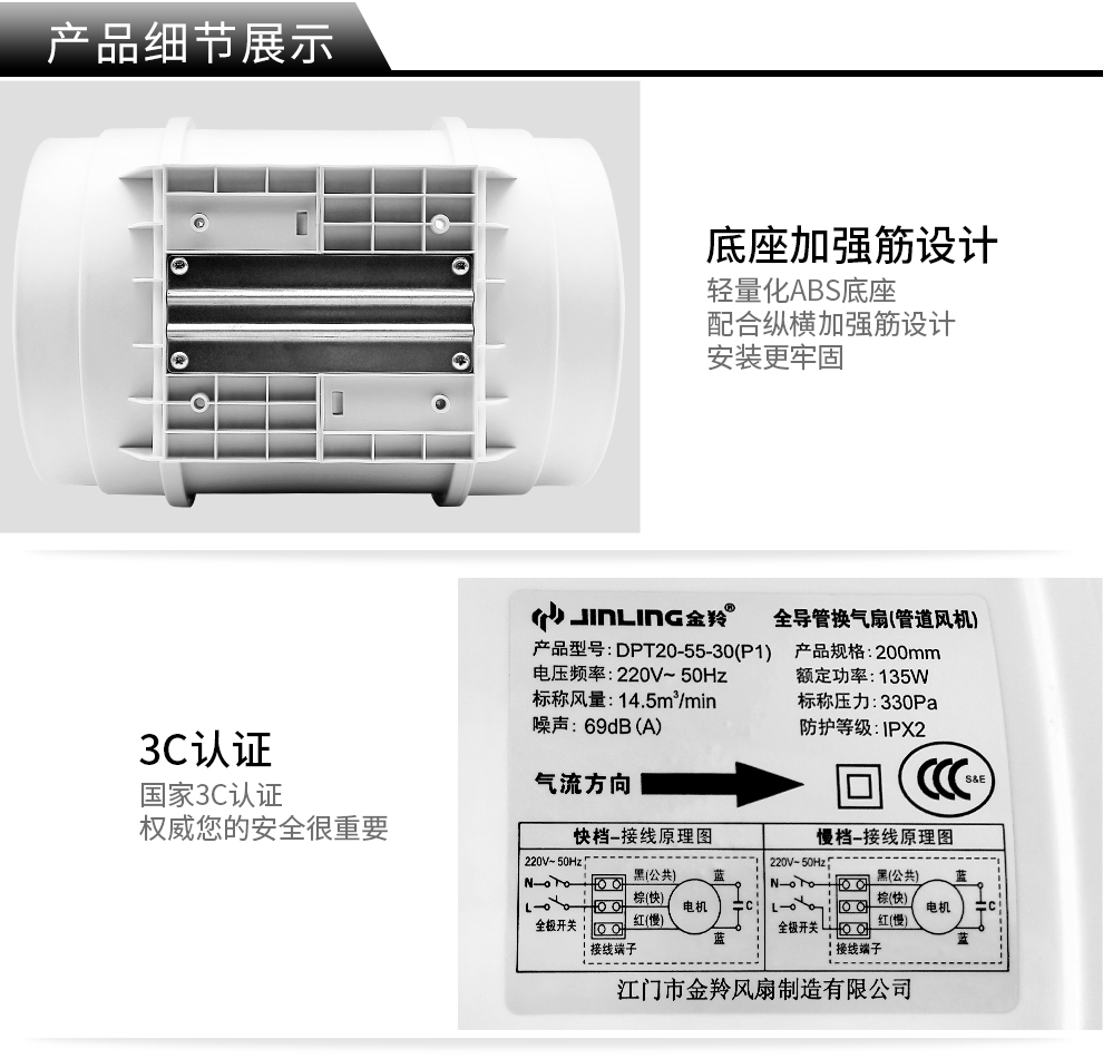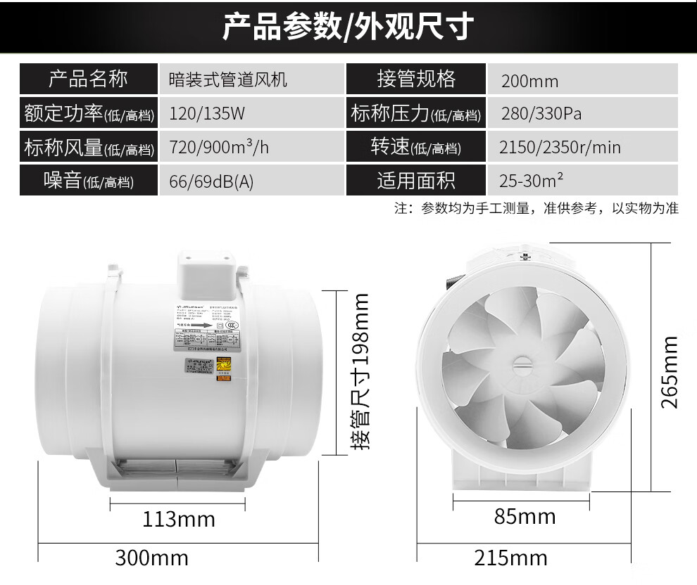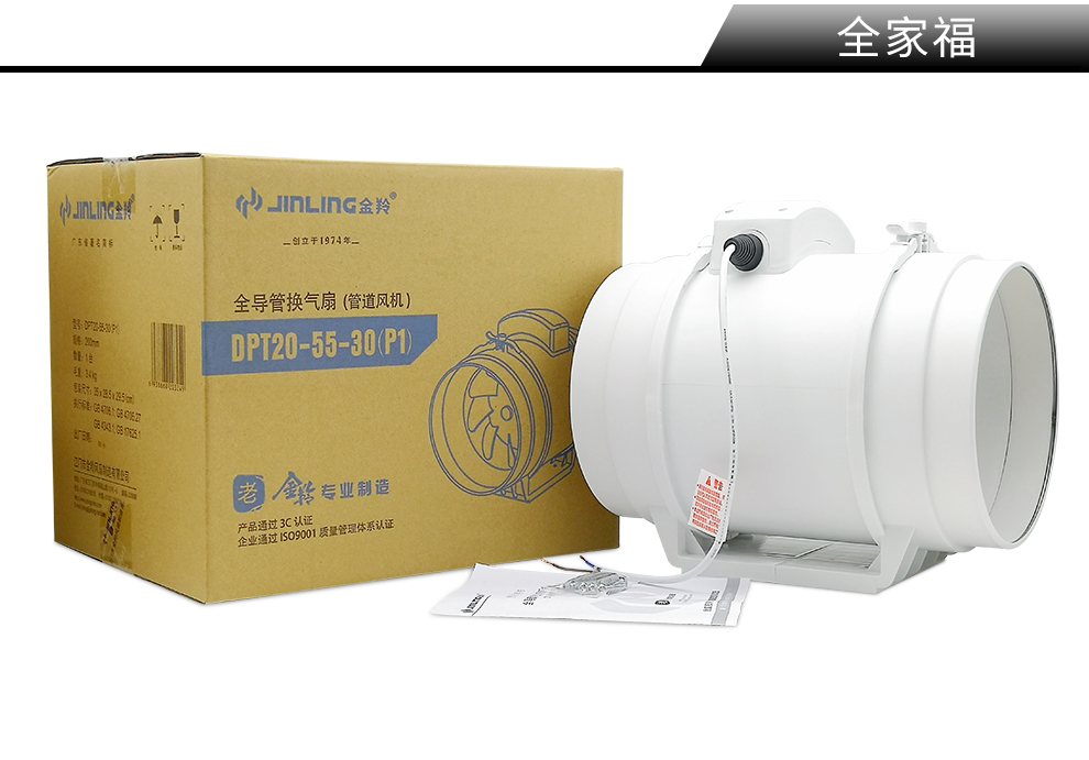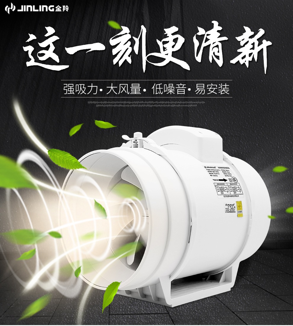 商品名称:金羚 JINLING斜流增压管道风机8寸圆形大功率排气扇厨房强力排风扇DPT20-55-30(P1 8寸【接管直径200mm】