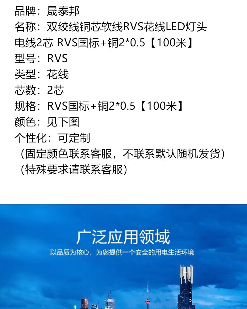 商品名称:晟泰邦 双绞线铜芯软线RVS花线LED灯头电线2芯 RVS国标+铜2*0.5【100米】