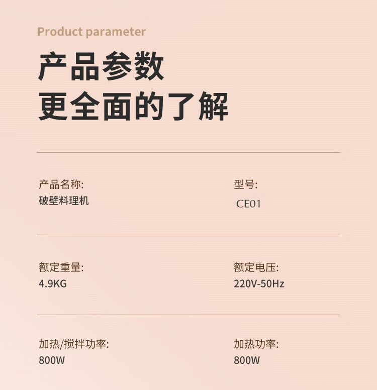 商品名称:艾贝丽豆浆机全自动家用多人破壁免过滤多功能迷你料理机CE01 单位:个