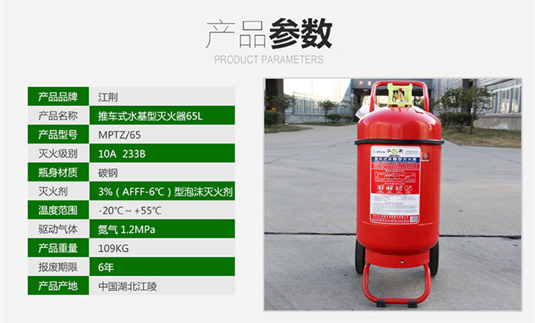 商品名称:江荆 水基灭火器65升 仓库厂房用 推车式水基灭火器MPTZ/65