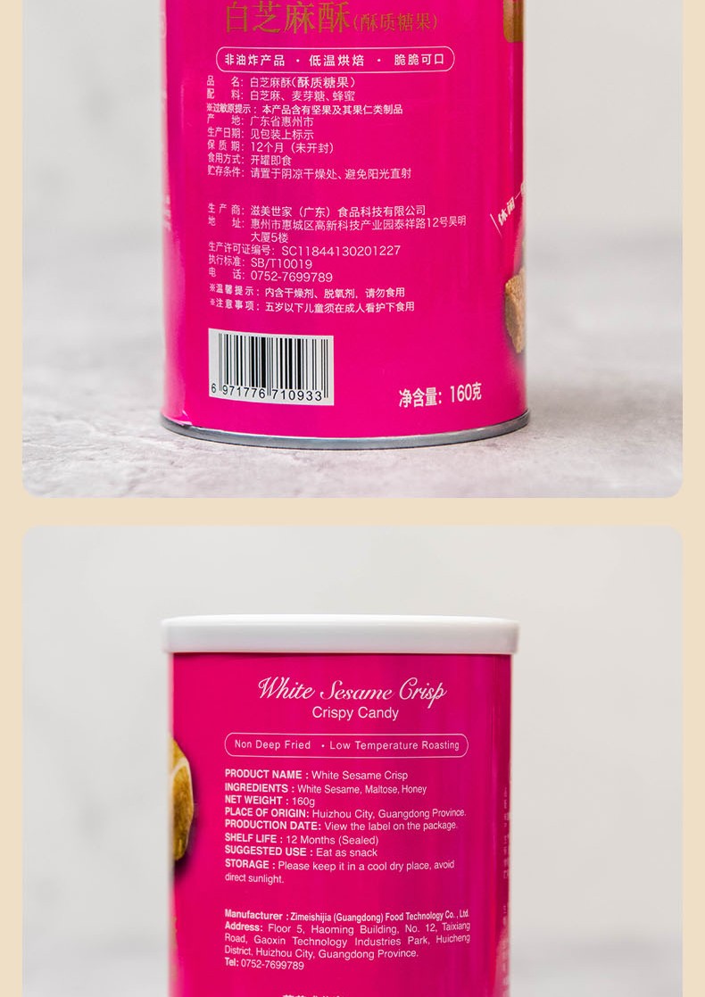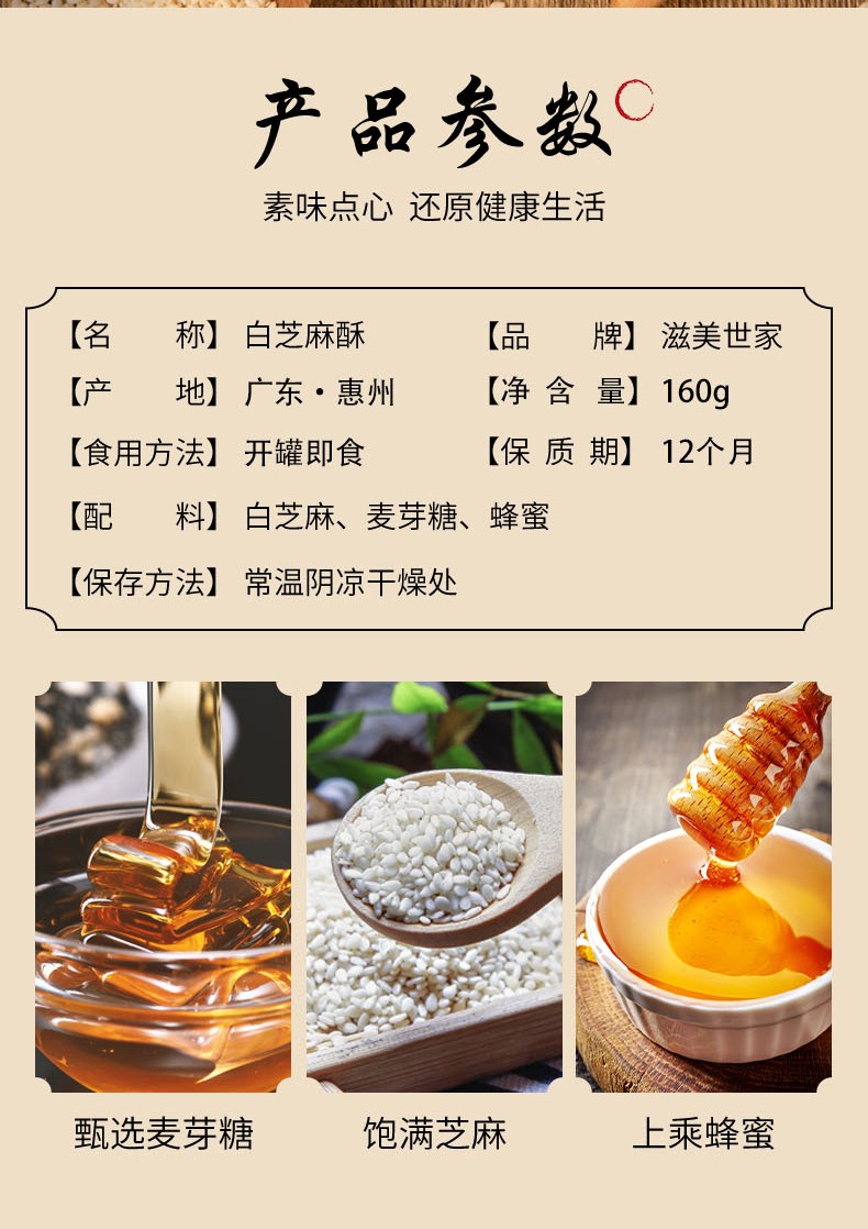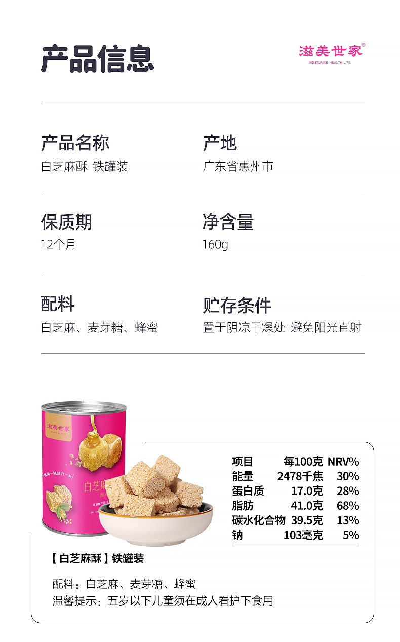 商品名称:滋美世家 白芝麻糖酥 罐装 160g