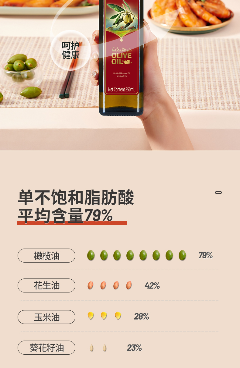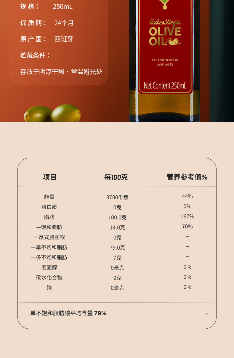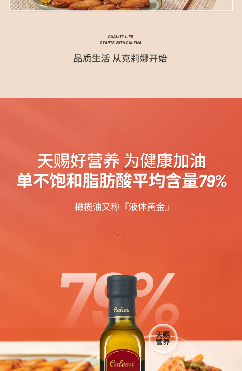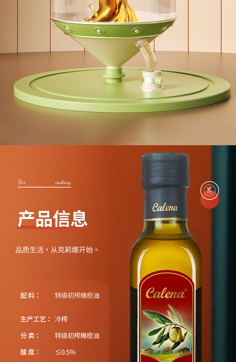 商品名称:克莉娜 calena 西班牙原油进口特级初榨橄榄油 250ml