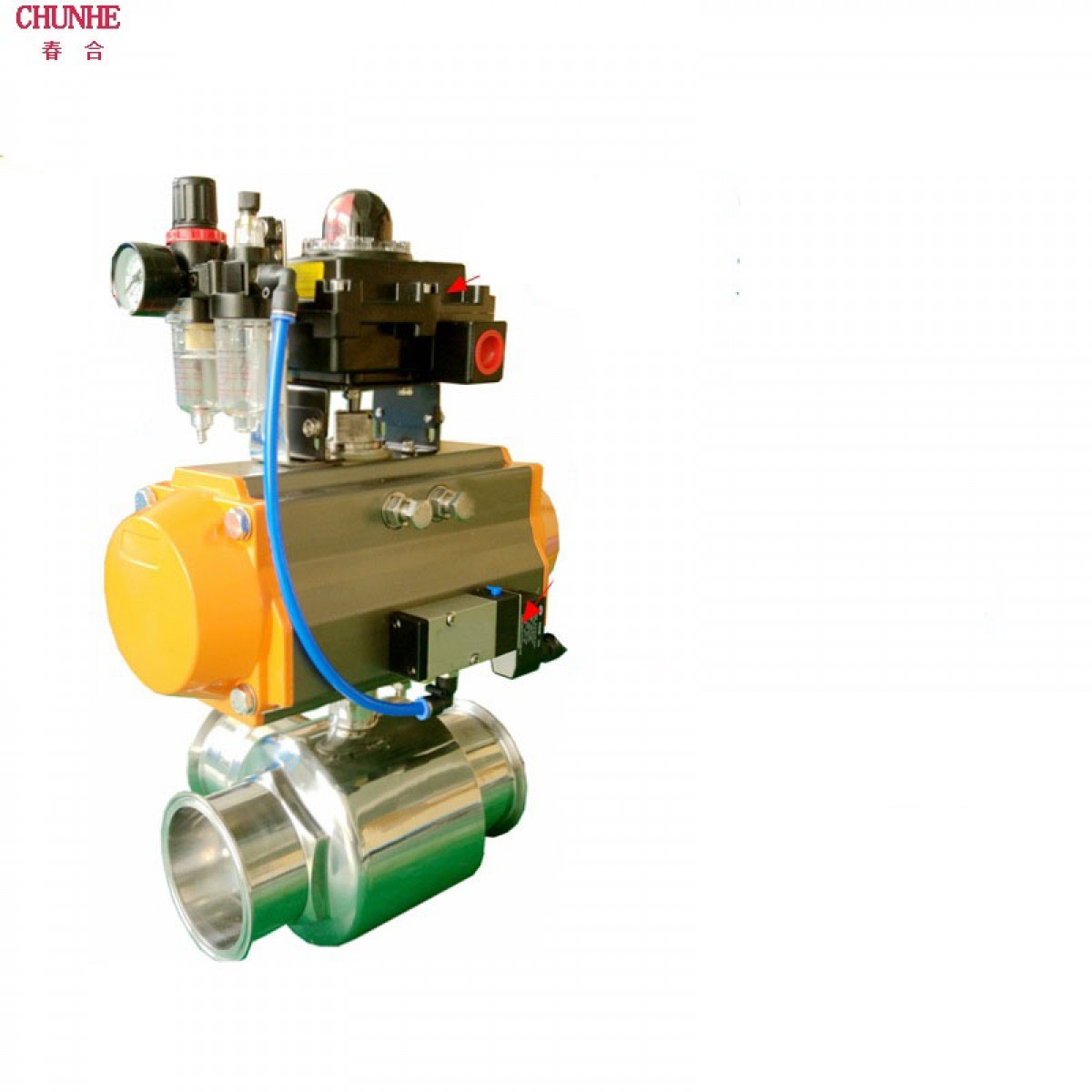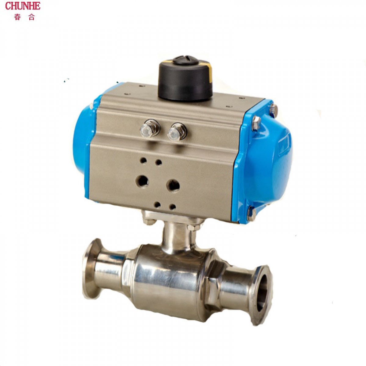 商品名称:春合 不锈钢316T型三通快装卡箍式气动球阀 Q685F-16R