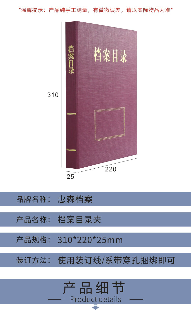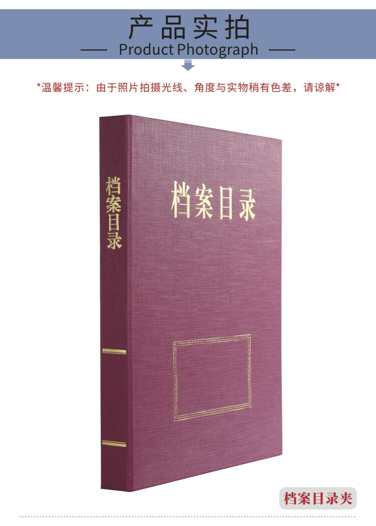 商品名称:惠森档案(HUISEN ARCHIVES) 档案目录夹 内设三孔文件夹资料夹 档案整理专用目录夹 档案目录 红色 2.5公分 10个装