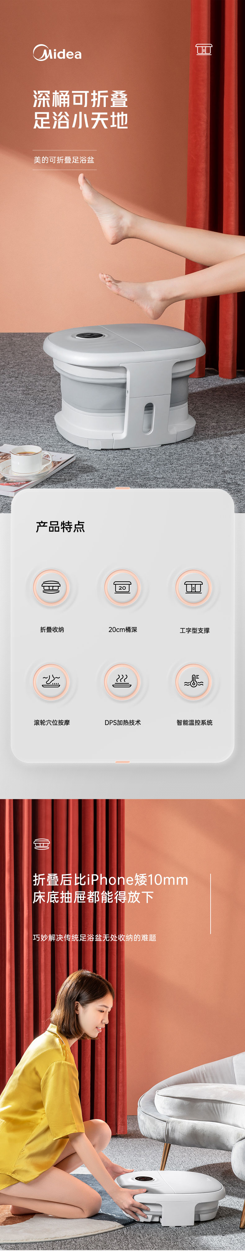 商品名称:美的(Midea)-MK-AY0101-电足浴盆-折叠便携恒温加热-白色-单位:台