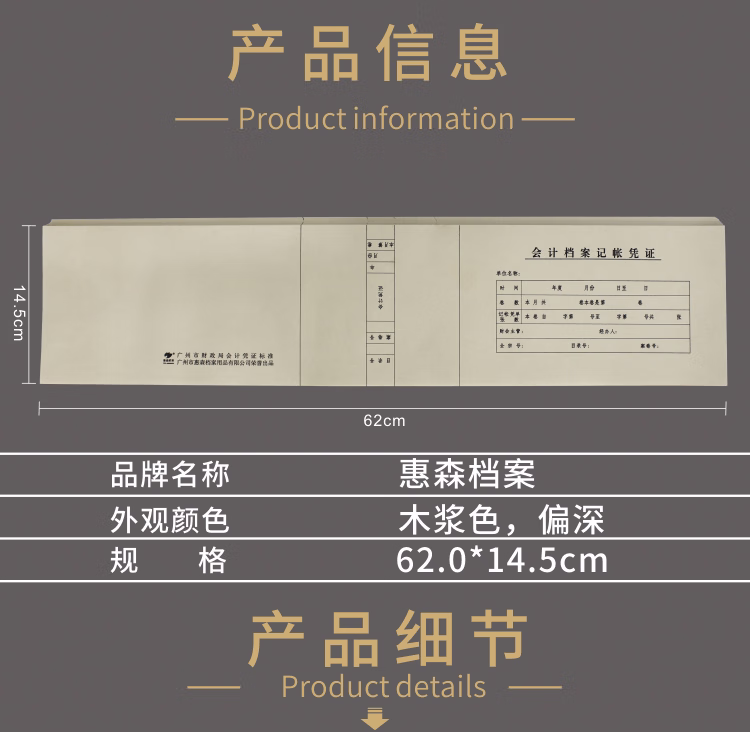 商品名称:惠森档案(HUISEN ARCHIVES) 连体凭证封面发票版 会计记账凭证装订封皮 标准凭证封面 会计档案记帐凭证 100套装