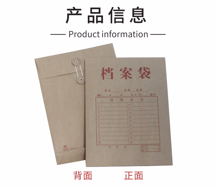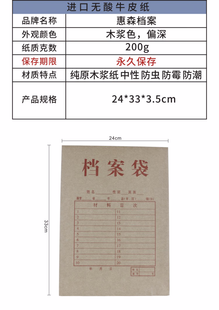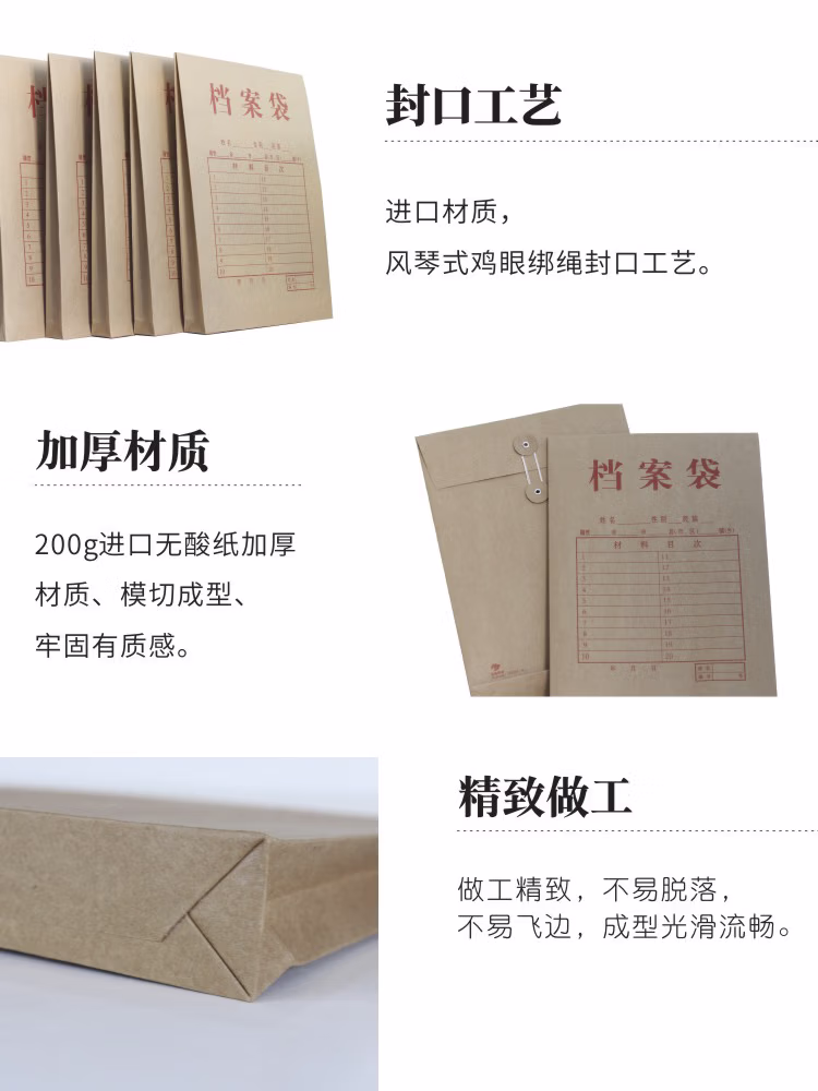 商品名称:惠森档案(HUISEN ARCHIVES) 牛皮纸档案袋标准档案袋A4档案袋标书合同文件整理收纳袋 标准档案袋50个装