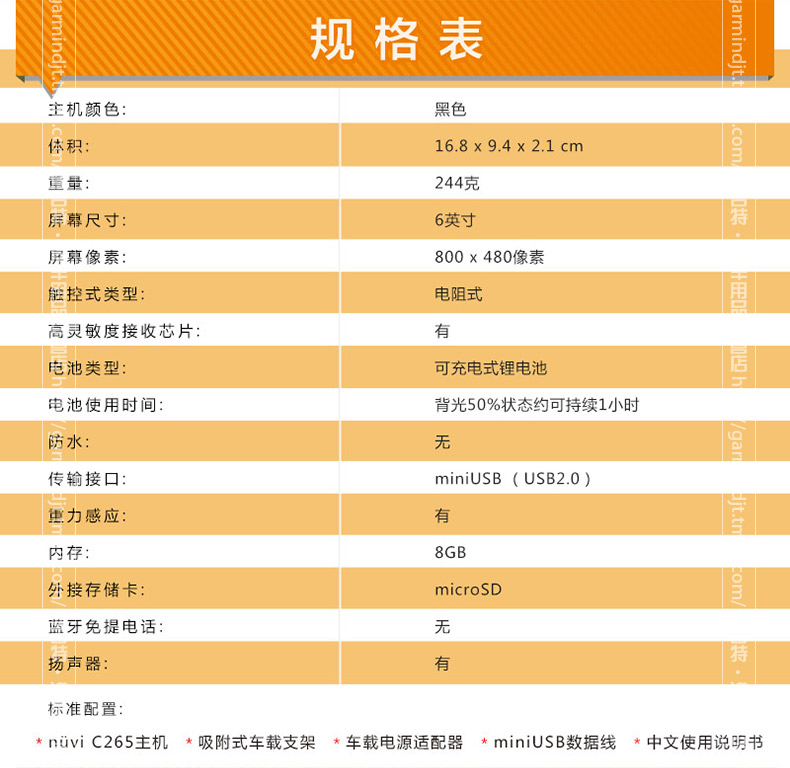商品名称:Garmin/佳明 C265 汽车GPS导航仪车载便携式 6寸高清 北美欧洲自驾