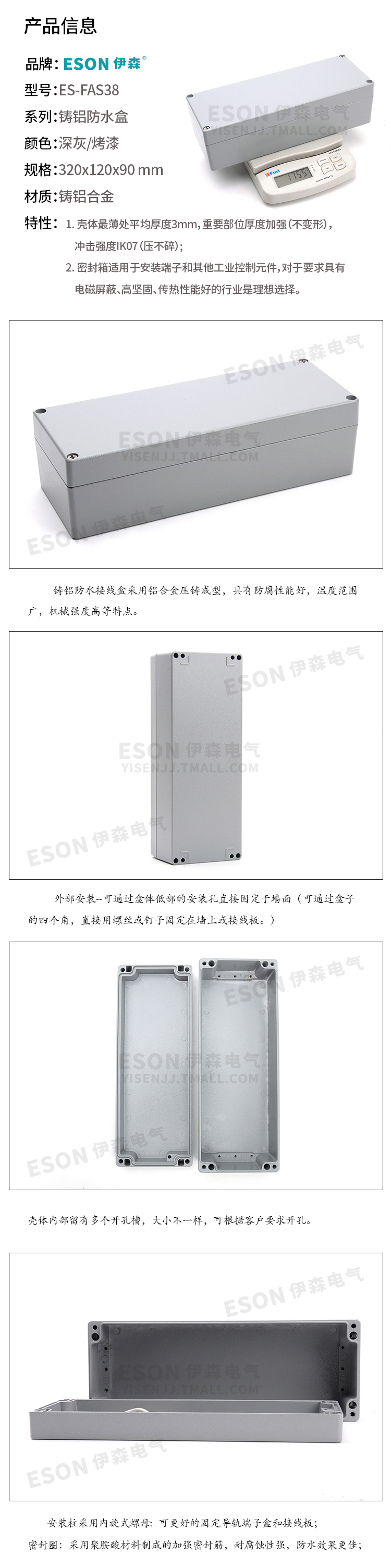 商品名称:伊森 铝防水盒 电线连接盒 室外密封盒 接线盒 ES-FAS38
