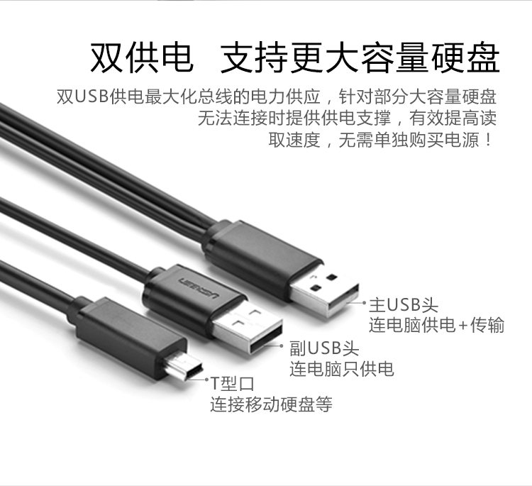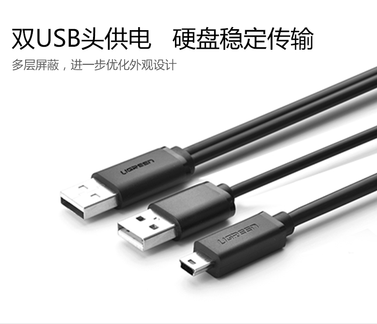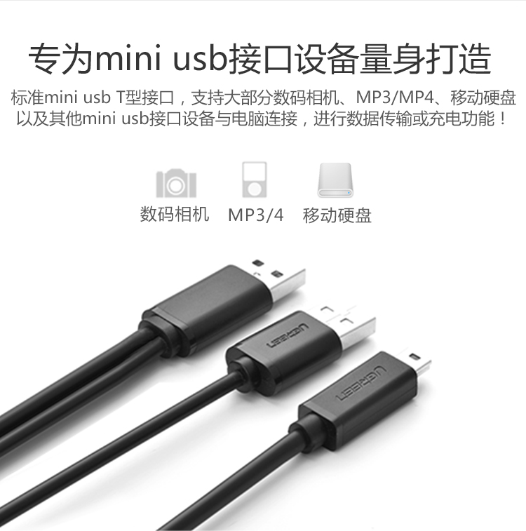 绿联mini usb移动硬盘线T型口硬盘线平板相机MP3数据线双头usb线迷你充电线双头行车记录仪接口