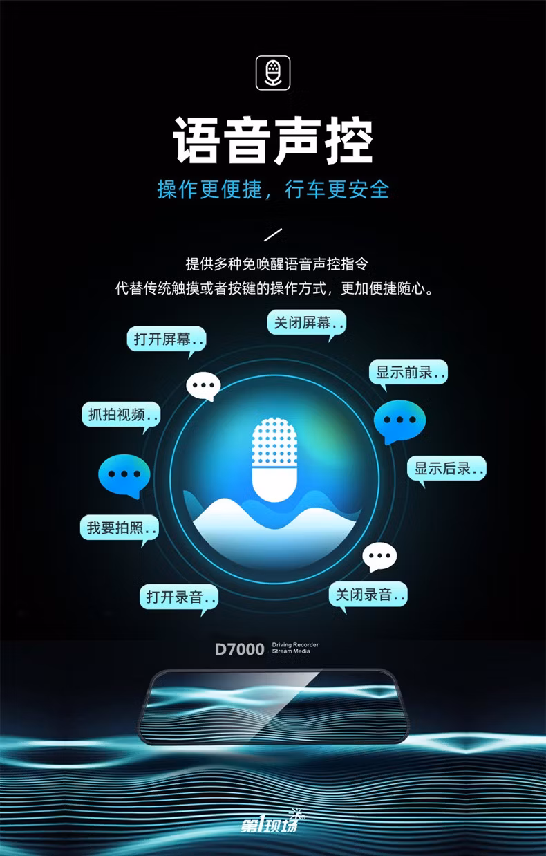 商品名称:第1现场2K高清行车记录仪D7000流媒体9.66英寸24小时停车监控前后双录满屏倒车辅助变道预警 2K高清变道辅助版