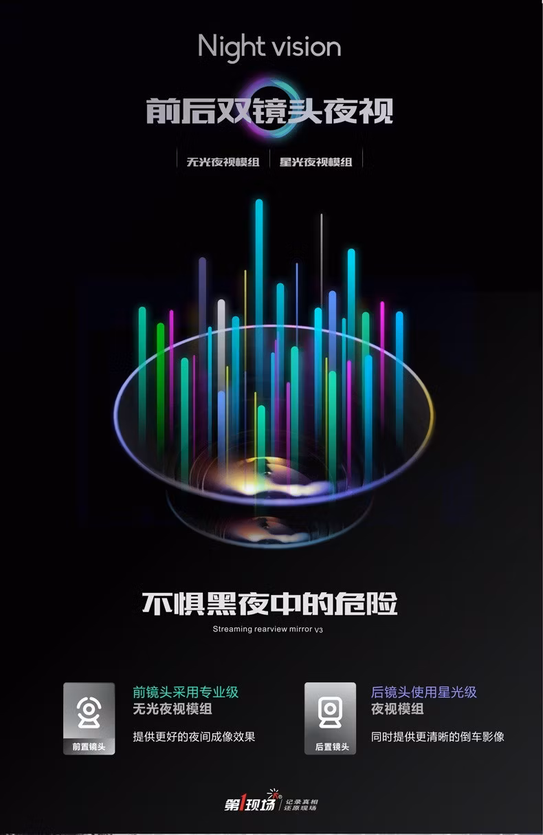 第一现场V15流媒体后视镜行车记录仪声控功能10英寸高清24小时停车监控自动循环录影无光夜视 免费包安装+64G高速内存卡
