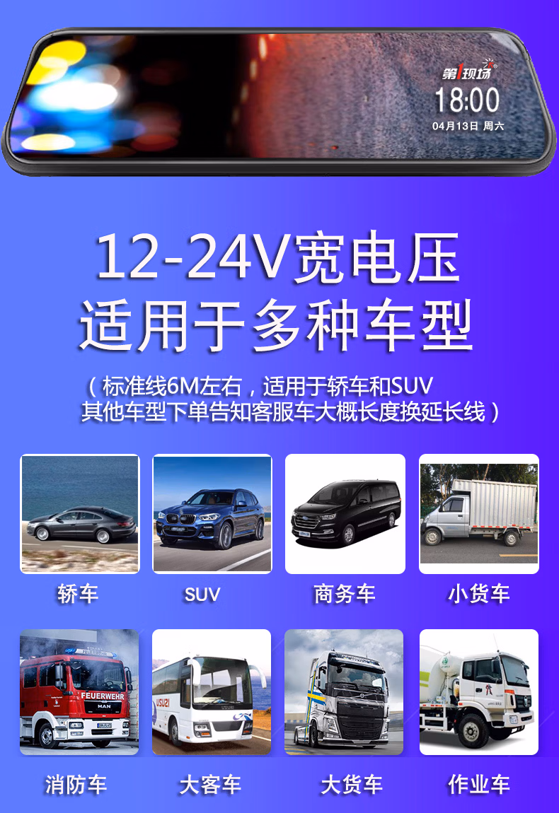 商品名称:第一现场V15流媒体后视镜行车记录仪声控功能10英寸高清24小时停车监控自动循环录影无光夜视 免费包安装+64G高速内存卡