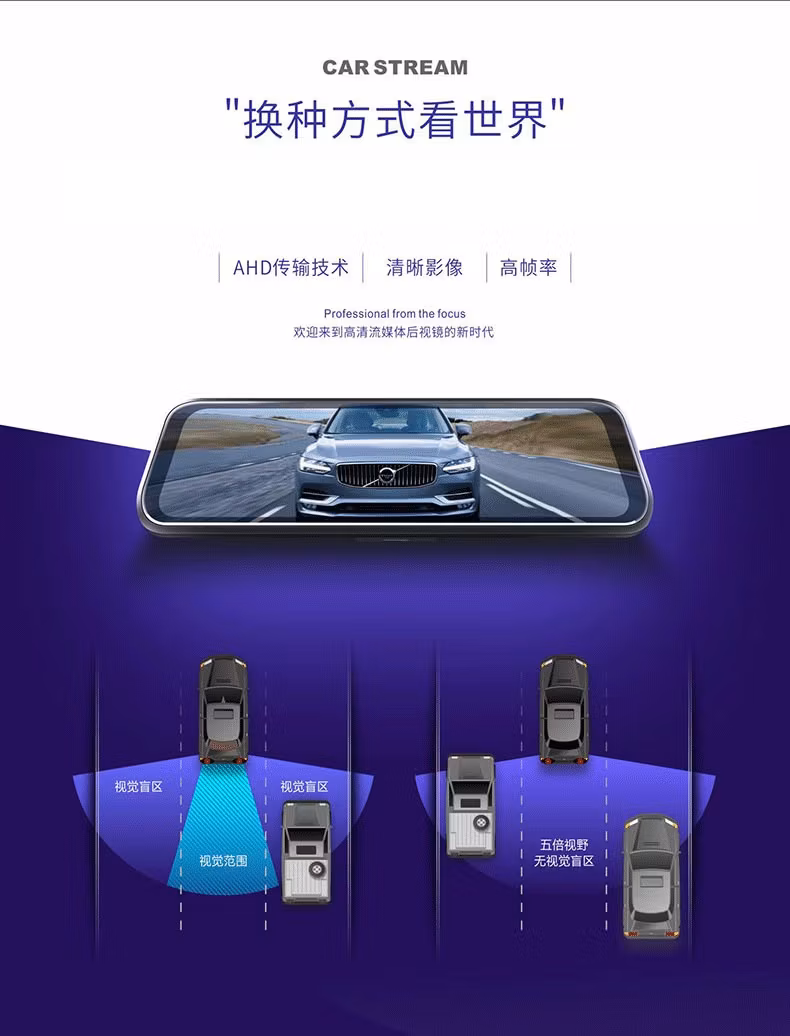 商品名称:第一现场V8流媒体高清记录仪9.66寸IPS触摸屏前后同显语音声控1080P高清24小时停车监控 官方标配+64G内存卡